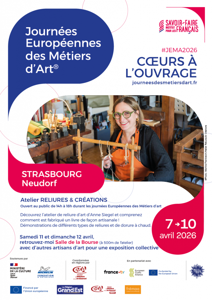 Entrez dans mon atelier durant les Journées Européennes des Métiers d’Art du 7 au 12 avril 2026 ! Comme de nombreux artisans et artisanes, j’ouvre les portes de mon atelier pour des visites gratuites et des démonstrations durant cette semaine devenue au fil des années le rendez-vous incontournable pour découvrir des métiers et la dynamique de l’artisanat d’art.